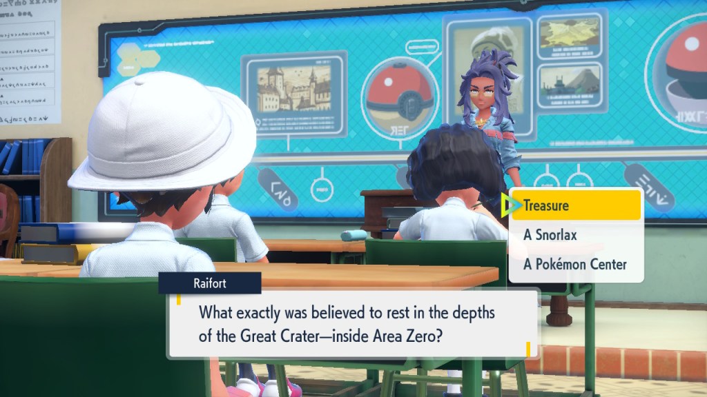 According to history teacher Ms. Raifort, the Paldea region was once the Paldean Empire, which was formed around two thousand years ago.  In order to compete more effectively with neighbouring powers, the dictatorial Emperor of Paldea apparently sent several expeditions into the giant swirling vortex of doom in the centre of the region, seeking a mysterious treasure that supposedly lay at the bottom, though none of these expeditions ever returned.  I’m sure this information is completely incidental to the plot and will have no bearing on future events!