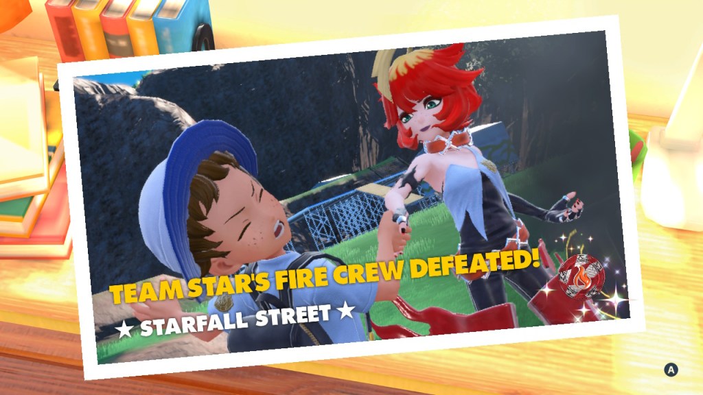 According to Cassiopeia, Team Star’s leaders operate by a sort of honour code where they must step down from their positions if they are defeated in battle.  However, we have to get to them first, and this involves a special kind of battle unique to Team Star, called a Star Barrage.  “Battle” here is a loose term; it’s really more of a brawl, where the entire crew sends out all their Pokémon, and you run around the base with three of your Pokémon, who can each fight Team Star’s Pokémon independently.  To win the Star Barrage you have to knock out a certain number within a time limit.  That’s really all there is to it; it’s not as interesting as it sounds.  Once that’s taken care of, Team Star is sufficiently impressed to allow us to battle…