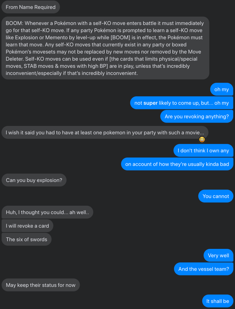 So we’re losing the Six of Swords and adopting this… explosive rule, meaning our cards in play are now these ones: