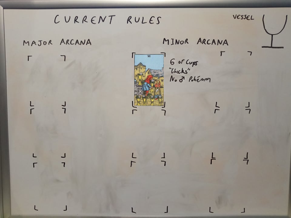 So, the simple consequence first: the Six of Cups is off the board; I can use male Pokémon again. The boys, as they say, are back in town.