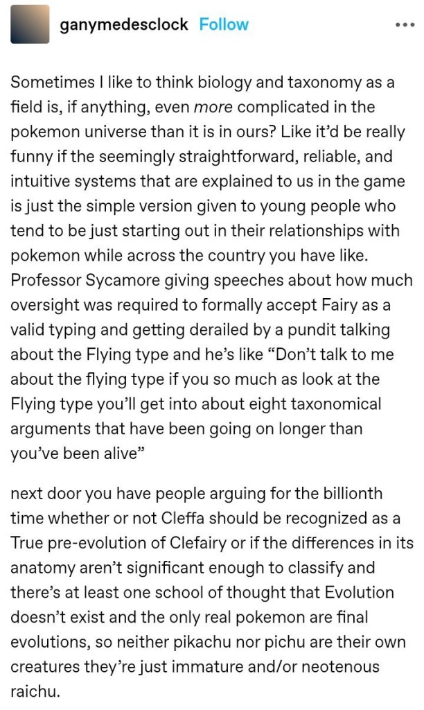 listen, for the record, I’m about to go way too into depth about this $#!t because I’ve tried to answer this before and I change my mind practically every time there’s a new Pokémon game, and I am chronically incapable of addressing a problem without recapping everything I’ve ever thought about it. Really what I should do is research it properly and actually write up A Big Long Thing, but that sounds hard so I’m not going to. If you read on you have only yourself to blame.