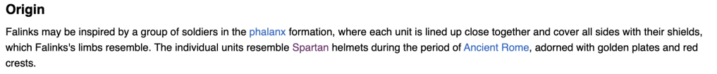 Y’know, I have weird issues with Falinks that are probably specific to me in particular, because I look at Falinks and think that it was probably designed for the British region, and plonked down in an “ancient ruins” area next to the town which is clearly based on Bath, as a reference to soldiers of the Roman Empire. And that’s great and all, but I’m a classicist and Falinks’ design and English name scream to me “classical Greek hoplite phalanx,” which is not the same thing, god damn it, so now I have to read this bit from Falinks’ Bulbapedia article: