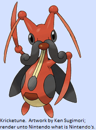 The one great blessing Farfetch’d enjoys is a custom item: the elaborately titled Stick. Holding a Stick dramatically increases his chance of scoring a critical hit (the base rate is 1/16, which the Stick increases to ¼; high critical-ratio moves like Leaf Blade and Night Slash jump from 1/8 to 1/3). With this in mind, and given his flavour, what mystifies me is that Farfetch’d doesn’t have the Super Luck ability, especially considering that the vast majority of Pokémon with this ability are birds. Super Luck would give Farfetch’d even more critical hits (1/3 for normal attacks, and ½ for attacks like Leaf Blade – the hard limit in the game’s programming), which on its own isn’t enough to make Farfetch’d effective but would certainly help. The first addition I would want to make to Farfetch’d, therefore, is Super Luck, replacing one of his current two absurdly situational abilities, Keen Eye and Inner Focus (while we’re at it, might as well replace the second one – Sniper doesn’t fit quite as well as Super Luck thematically, but triple-damage criticals make sense in the context of what I’m doing with Farfetch’d). The second thing he needs is a reasonable way of penetrating the manifold resistances of Steel Pokémon, which include about two thirds of the elements in the game (honestly I think this is a major game balance concern in itself but that’s not what we’re here for). Water, Fire, Electric and Ground attacks don’t really suit Farfetch’d, but you could probably make a solid argument for giving him a Fighting-type signature move (a lot of Farfetch’d cards have an attack called Leek Slap, but I’d also be tempted to give it a really ridiculous name like Onion Kata, just because it’s Farfetch’d); something with a high critical rate to keep up the theme, and probably more power than Night Slash but not a lot more. What I’m dancing around is the fact that none of this will be enough unless Farfetch’d evolves and earns some stronger stats to back it up. Much as he needs it, I just don’t know what to do with him. Unlike all the other Pokémon I’ve been talking about Farfetch’d has a very neat design, which I don’t want to tamper with. It’s not so much that the design is utterly brilliant, although it is very good; it’s more that Farfetch’d hits some very specific notes, culturally speaking, and it’s hard to think of a meaningful way to develop on that (especially given how little I actually know about Japanese culture). If pressed, I would try to work with the idea that a duck carrying a green onion is symbolic of naïveté; in his evolved form, which I think should have perhaps a small crest and slightly more varied colours but nothing bright or gaudy, Farfetch’d becomes wiser and worldlier. He still carries his green onion, since he still needs it to survive, but he is normally quite reclusive and is highly practiced at keeping himself hidden. While in the open, he often walks along the ground to conceal his own agility, only to spring into the air when attacked. Rather than foraging for food himself, he often prefers to trick other Pokémon into leaving their own food unguarded, or even con them out of it. His stats all increase, but their distribution doesn’t change much; his biggest strengths are still physical attack, special defence and speed, in that order.