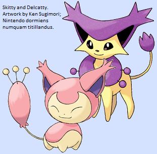 We know she’s a hoarder; that normally implies a good memory and possibly intelligence (likewise my theory that those balls of charged fur are a trap for Pokémon trying to nick her stuff). Going with that idea, I think I want Pachirisu to evolve into a kleptomaniac squirrel, maybe an Electric/Dark dual-type: change her colour scheme, but maybe keep the general ‘cute’ aesthetic because I imagine her gazing up at you adorably when you catch her stealing things. These Pokémon have lived around humans for centuries, and although they are notorious as spies and pickpockets their presence is tolerated because they make useful errand-runners, and are highly proficient cleaners thanks to their bushy tails (historically they were best-known as chimneysweeps – I’m looking for an “1800’s English street urchin” feel, but trying to avoid being too blatant about it). They mainly steal food but have also developed a liking in modern times for portable electronics and batteries, which they hide in nests scattered all around their territory. It’s normally impossible to find all of one’s hiding places without capturing her and getting her to lead you to them. Super Fang already makes Pachirisu a nightmare for defensive Pokémon, so we may as well play to that and give her Taunt. How useful Torment, Snatch and Switcheroo would be for her is debateable, but let’s toss them in anyway (and, of course, she’ll need Thief for thematic reasons). Also, for some reason Pachirisu doesn’t get Wish; she’s heavily defence-oriented and needs to be able to heal herself, and there’s no reason she shouldn’t have it, so let’s add that. Lastly, her current abilities, Run Away and Pickup, actually have no in-battle effects at all. I can’t think of anything to do with Pickup at the moment, but it makes sense that Run Away should allow Pachirisu (and the other Pokémon that have it) to escape from trapping techniques like Mean Look or Fire Spin, instead of only allowing them to escape from wild Pokémon without fail.